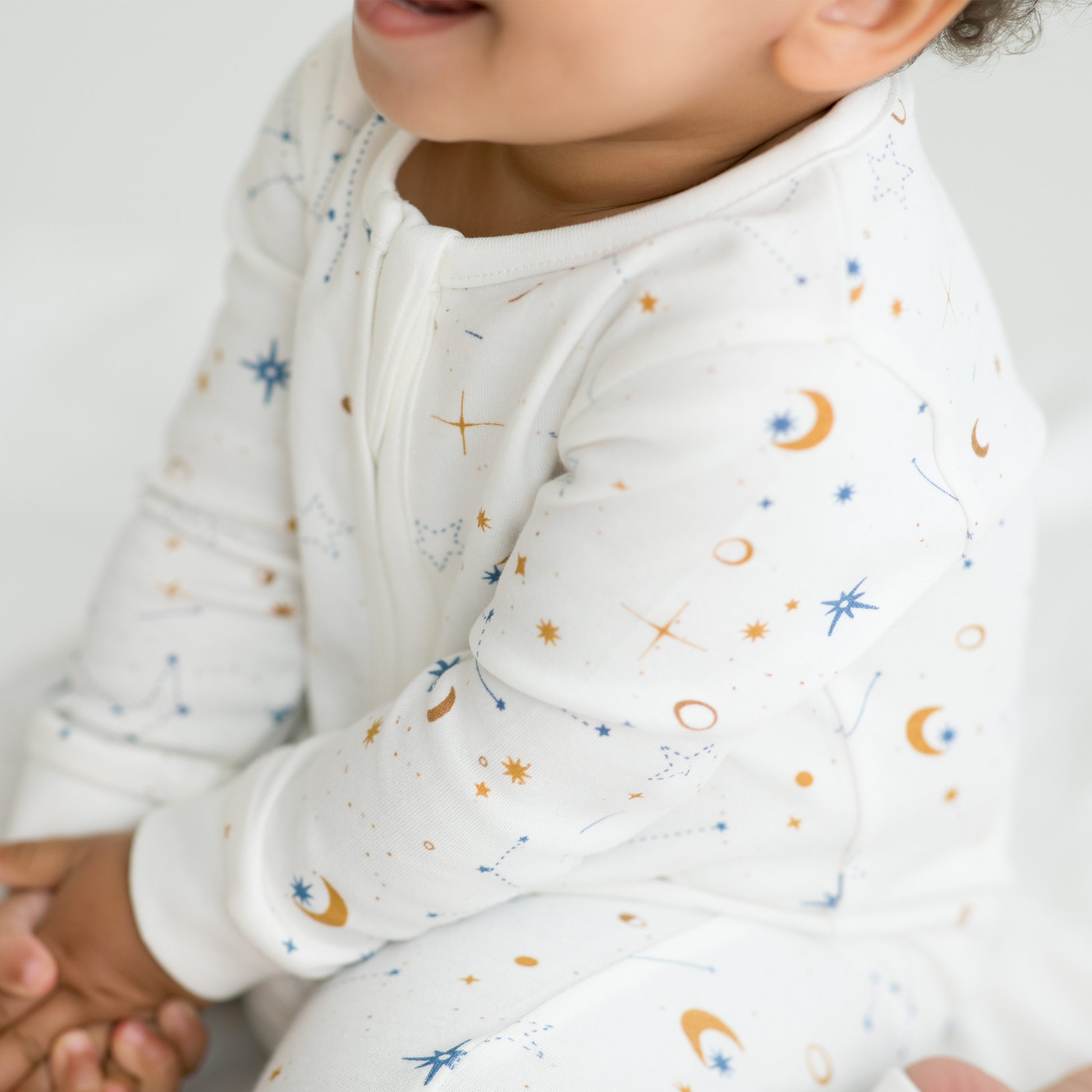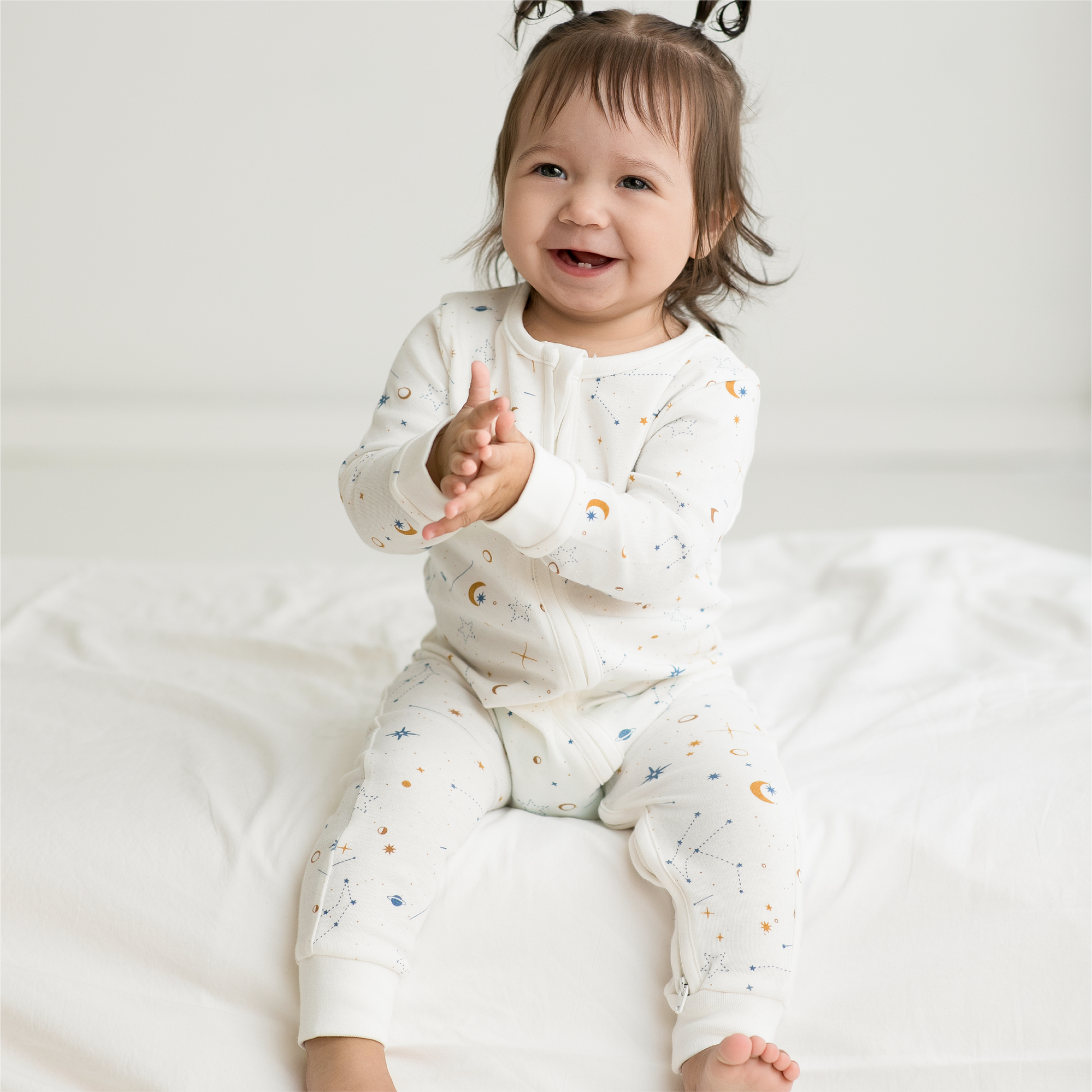 Our zip long sleeve sleeper is made from high-quality Organic Cotton, ensuring a soft and gentle touch against your little ones skin. It features a convenient two-way zipper closure for making diaper changes a breeze and the open foot detail allows our little ones greater mobility.