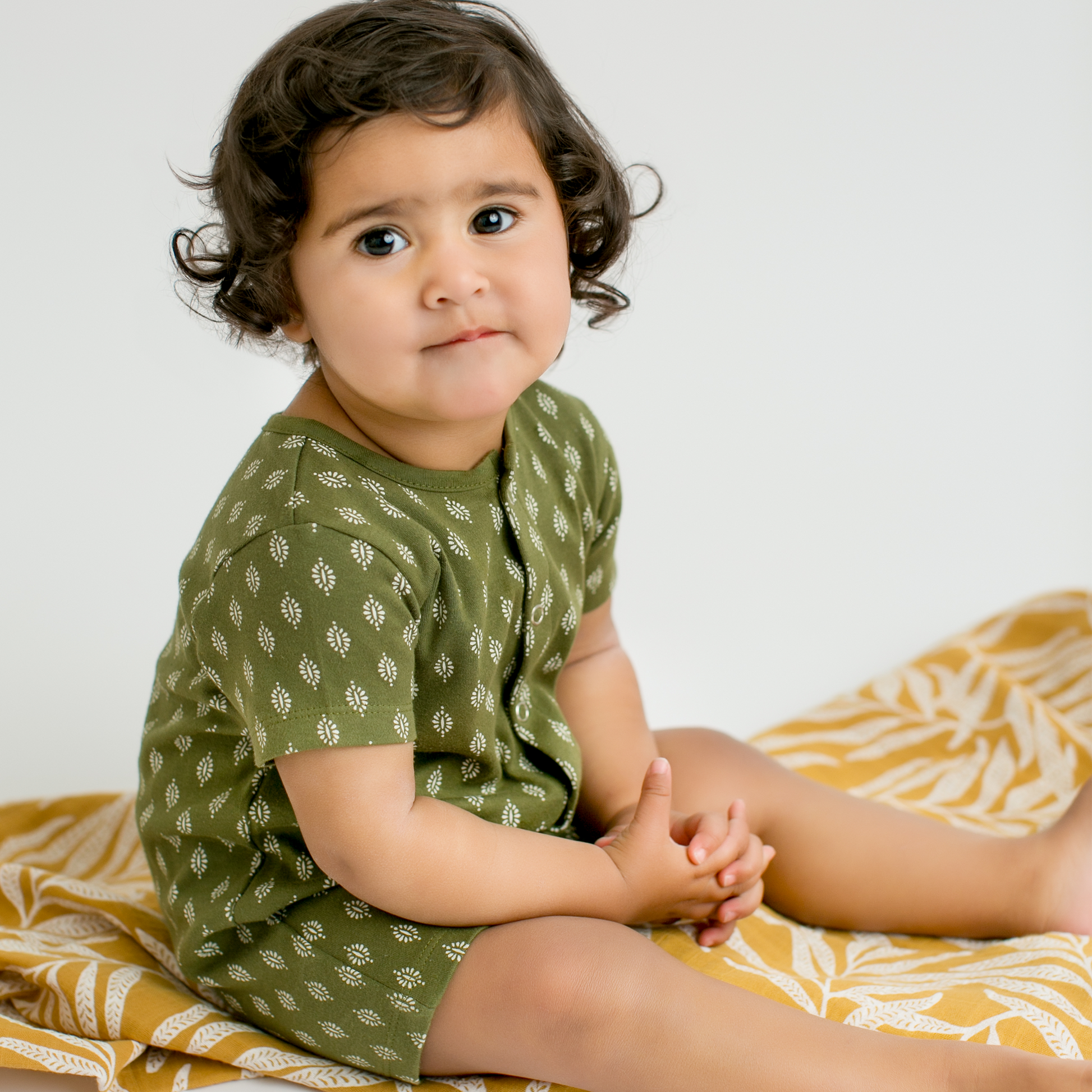 Our short sleeve romper is made from high-quality Organic Cotton, ensuring a soft and gentle touch against your little ones skin. It features a long front button opening for making diaper changes a breeze.