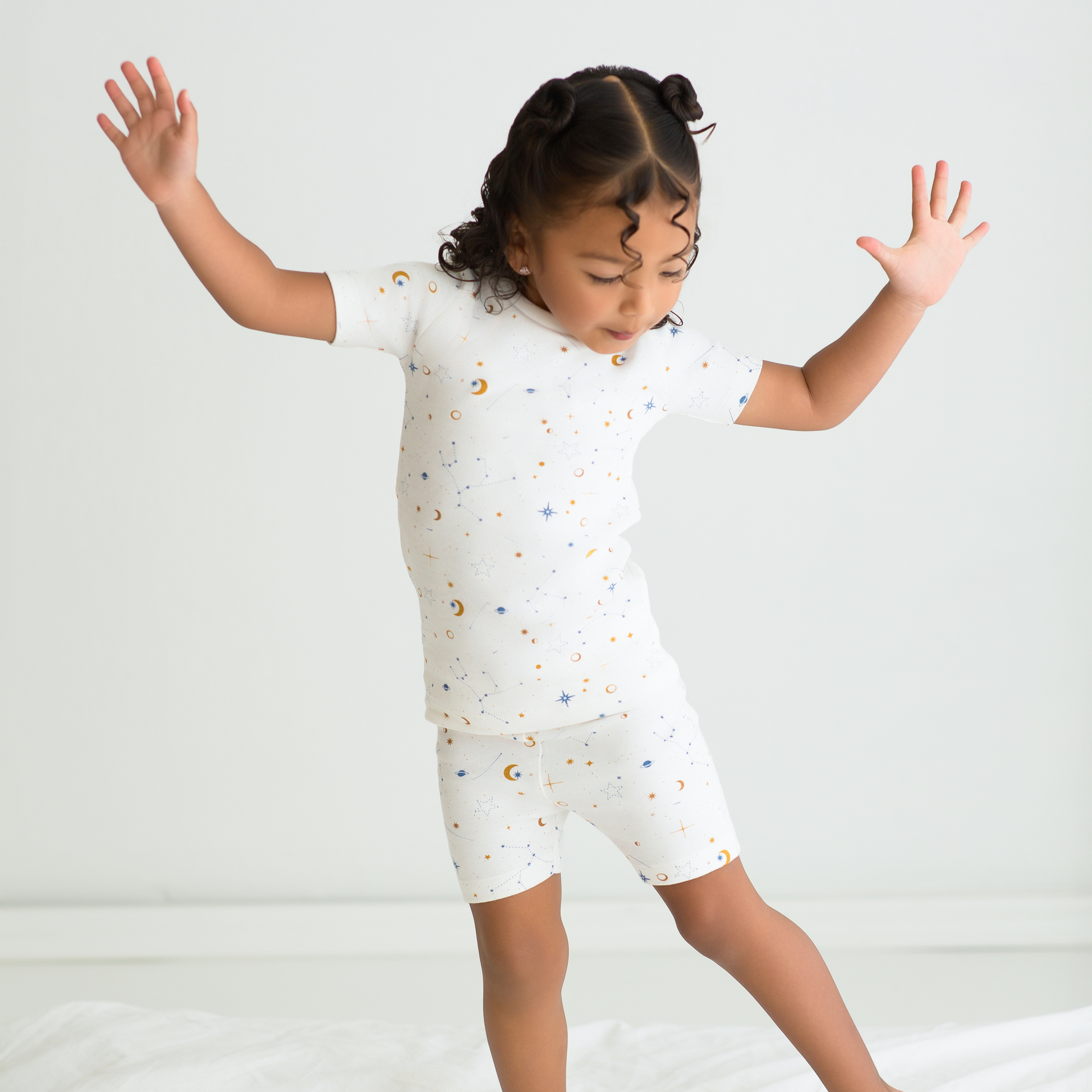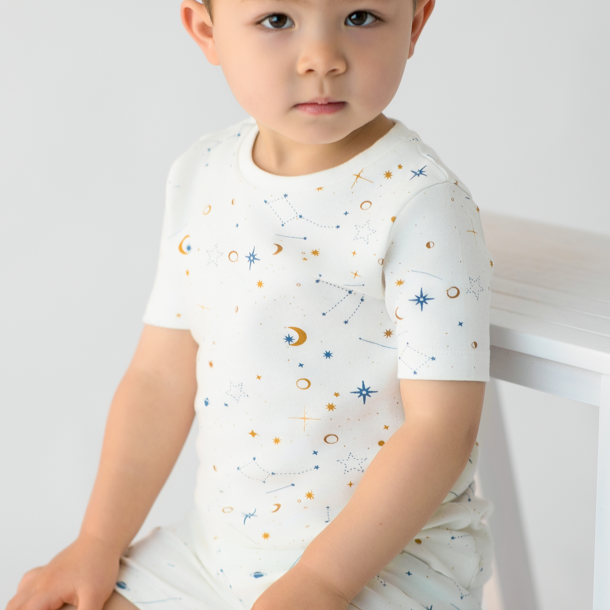 Our Short Two Piece pajamas are made from high-quality Organic Cotton, ensuring a soft and gentle touch against your little ones skin. It features an elastic waistband and are, ensuring comfort that lasts all night. Designed for durability and repeated wear, they offer cozy breathability ideal for the entire season.